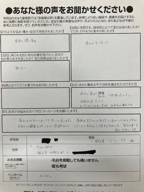 産後骨盤矯正で腰痛がなくなった福山市のママ